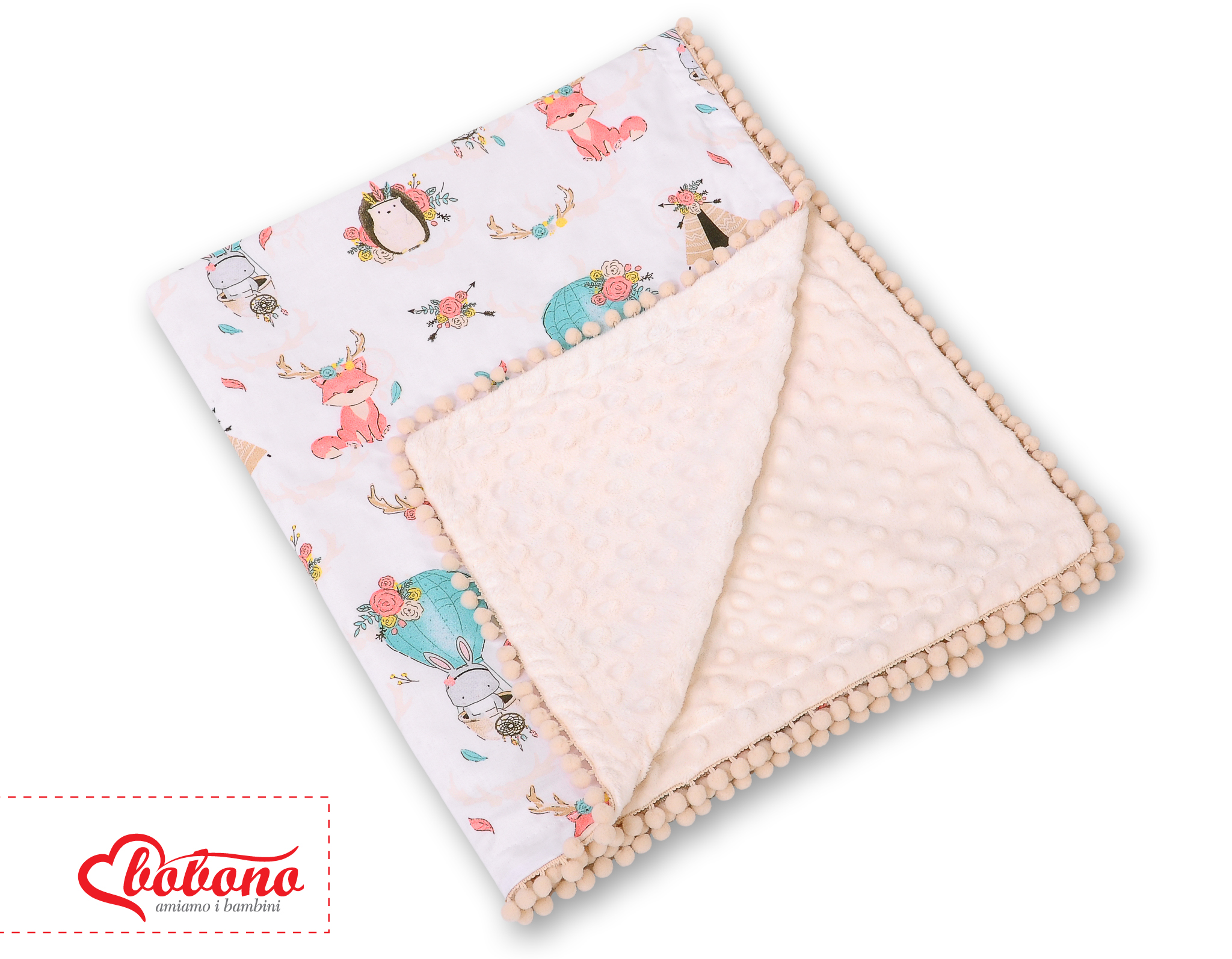 Stubenwagen » Bettwäsche für Babys » Bettwäsche für Babybett FUN & JOY » Wendedecke doppelseitig mit Pompons (mit Minky) » Wendedecke doppelseitig mit Pompons - Füchse beige