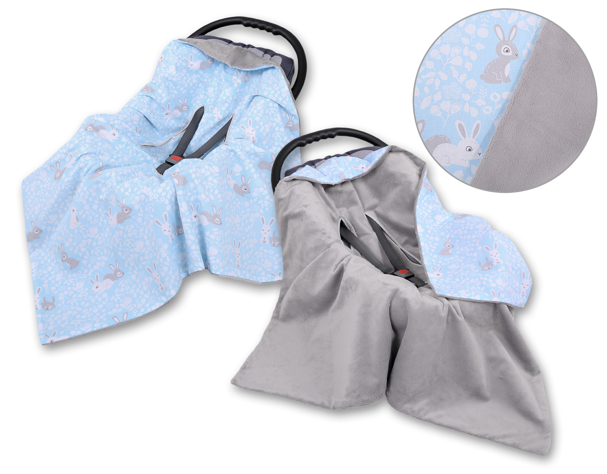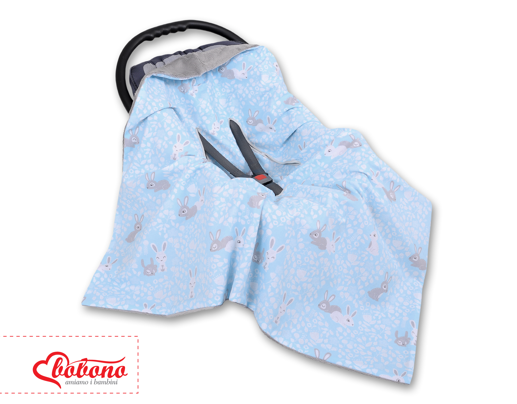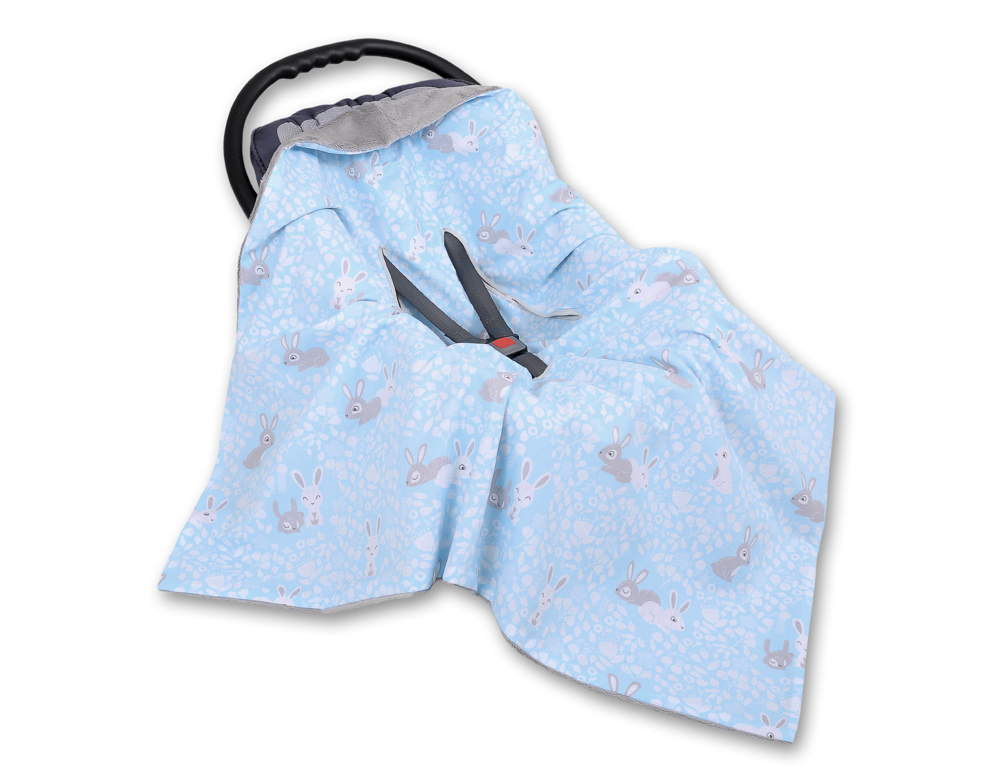 Stubenwagen » Bettwäsche für Babys » Bettwäsche für Babybett FUN & JOY » Wendedecke für Kindersitz » Wendedecke für Kindersitz - blaue Hasen
