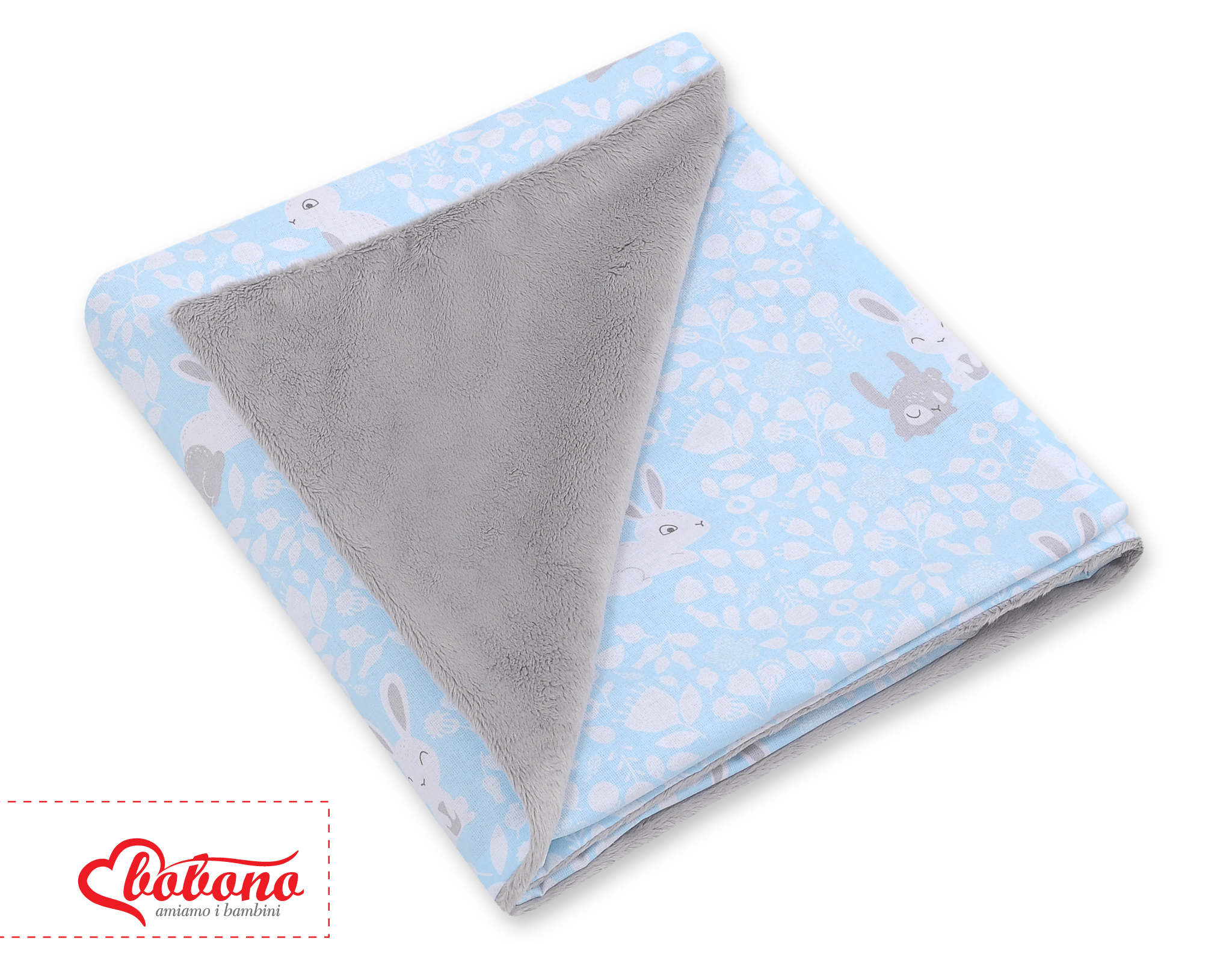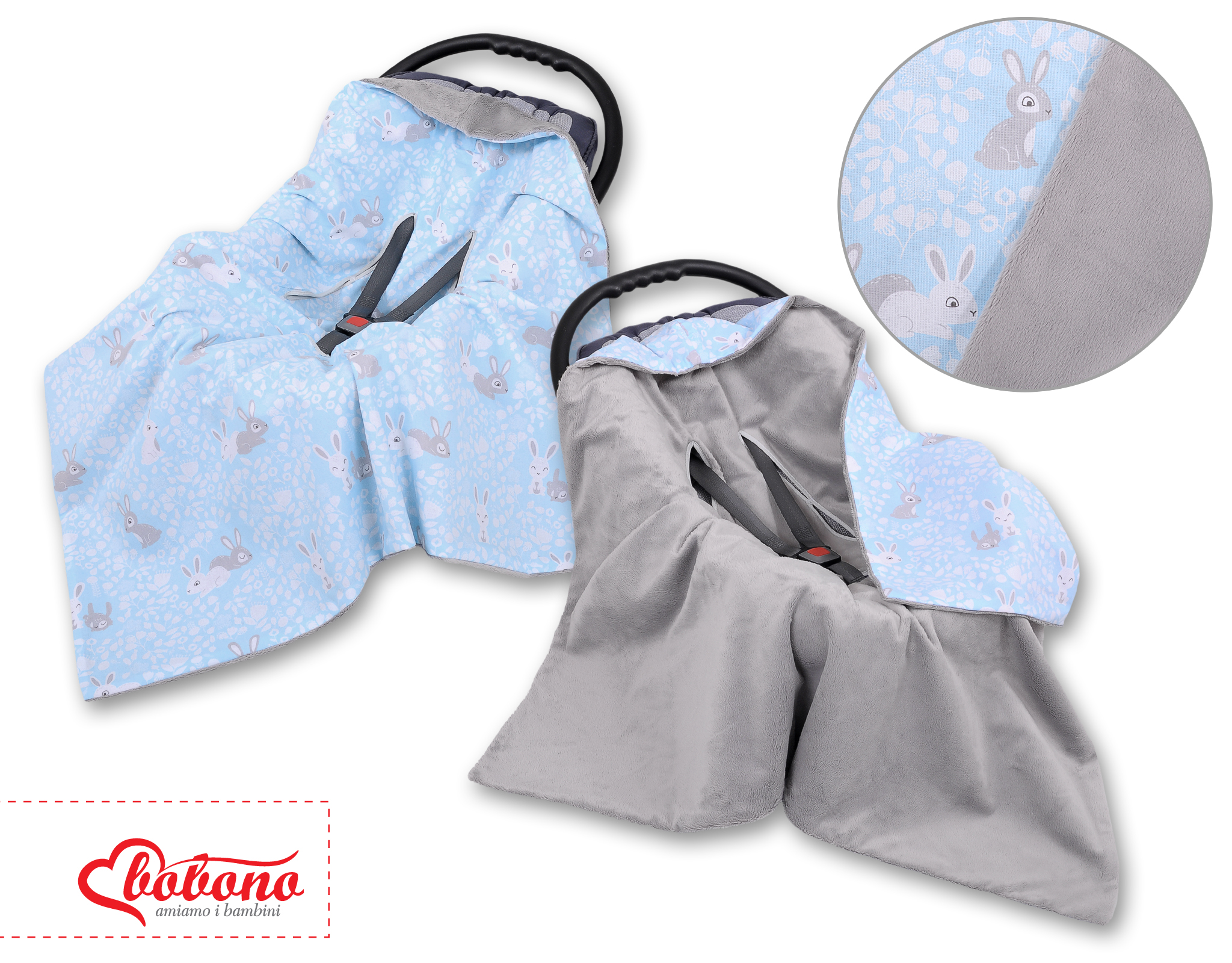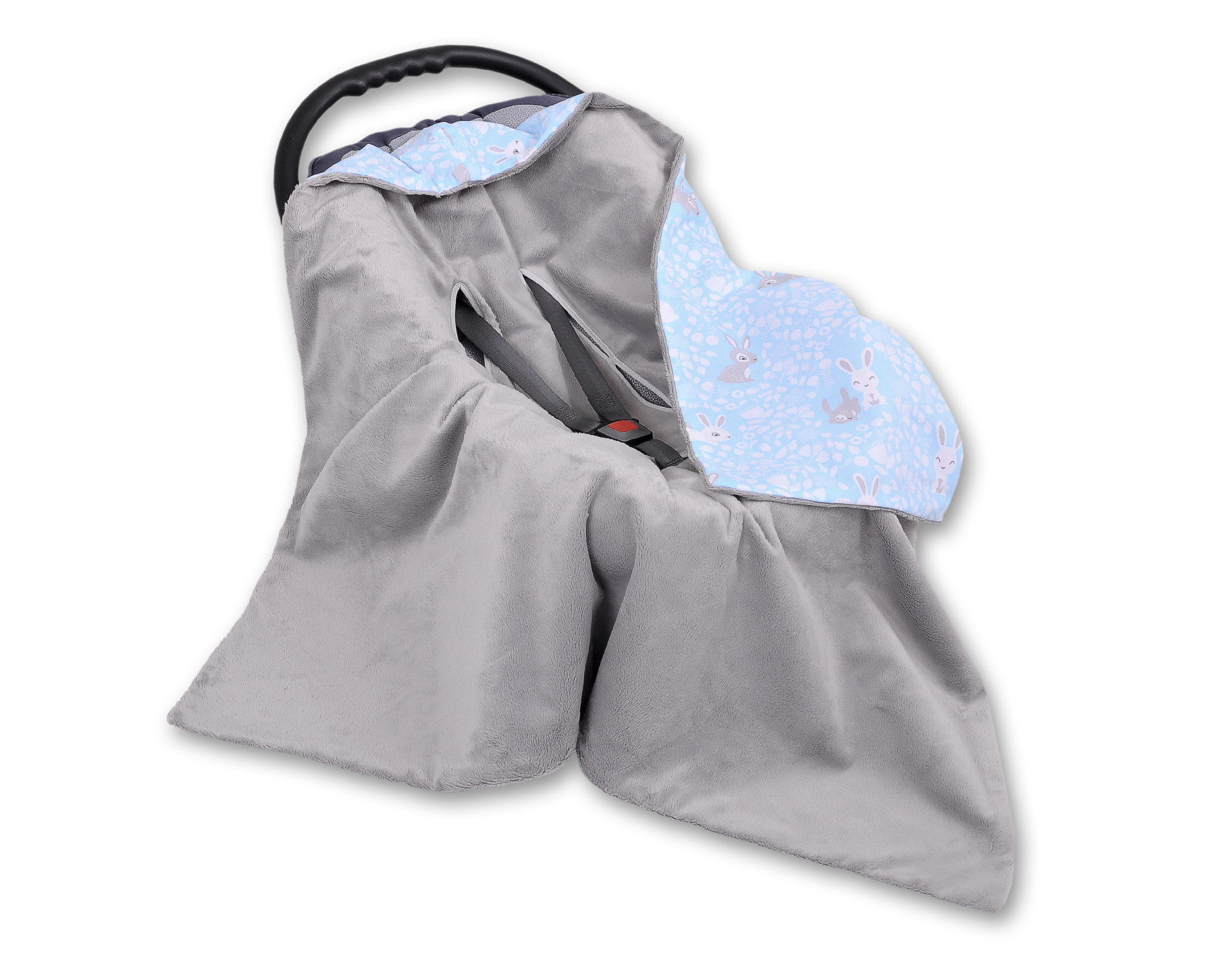 Stubenwagen » Bettwäsche für Babys » Bettwäsche für Babybett FUN & JOY » Wendedecke für Kindersitz » Wendedecke für Kindersitz - blaue Hasen