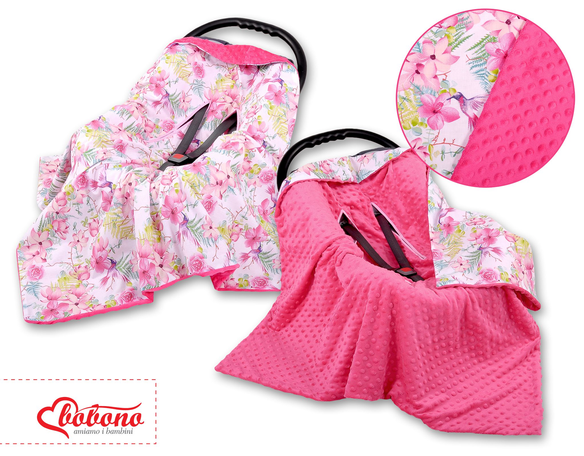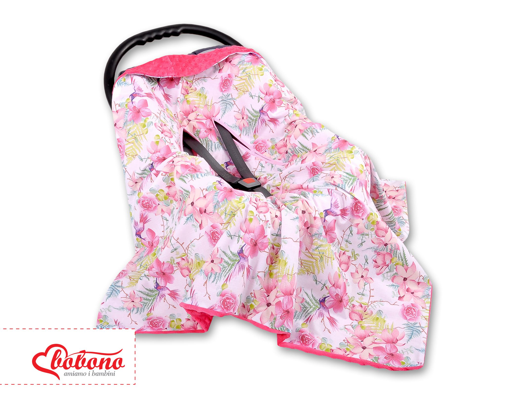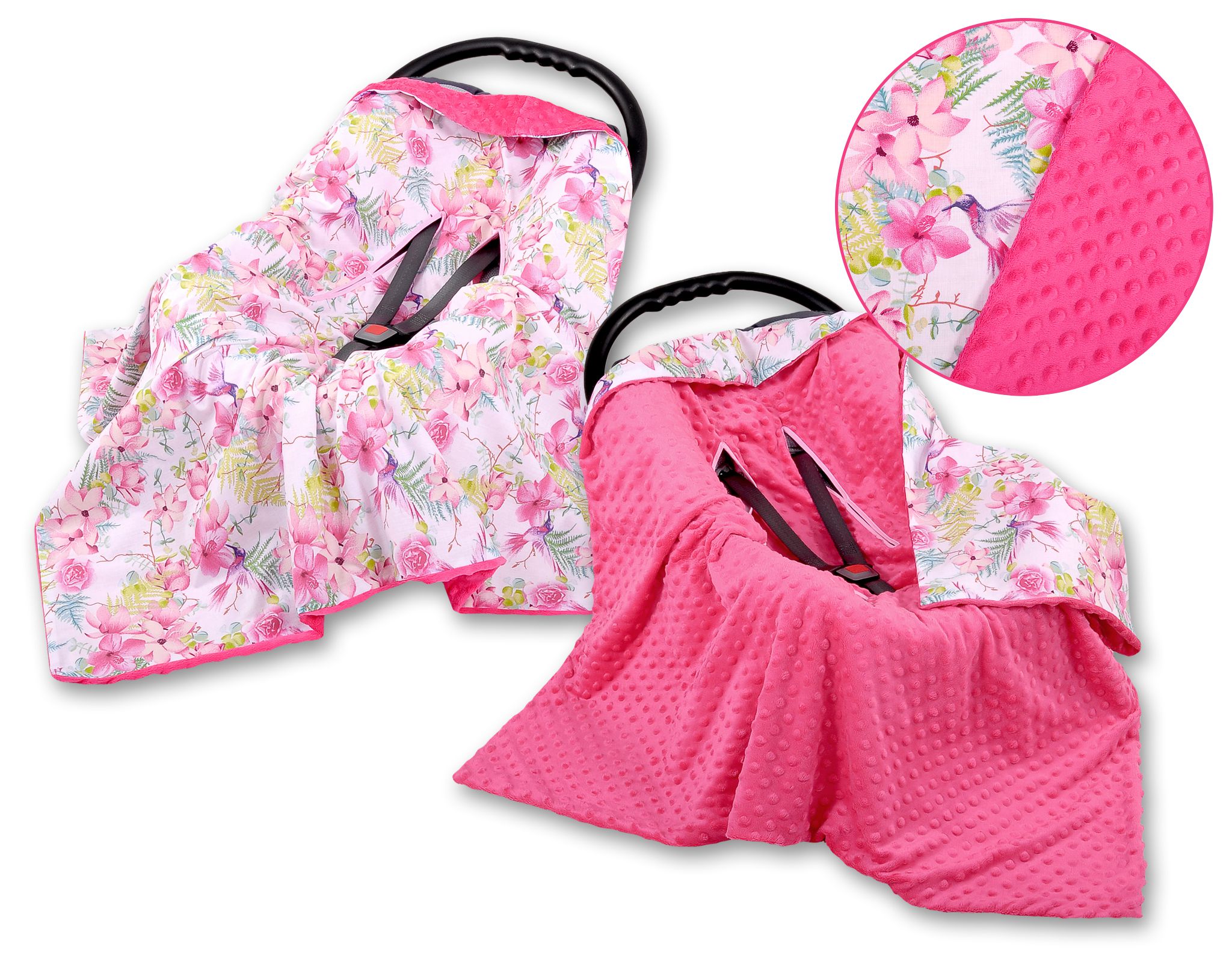 Stubenwagen » Bettwäsche für Babys » Bettwäsche für Babybett FUN & JOY » Wendedecke für Kindersitz » Wendedecke für Kindersitz - Kolibri in Blumen