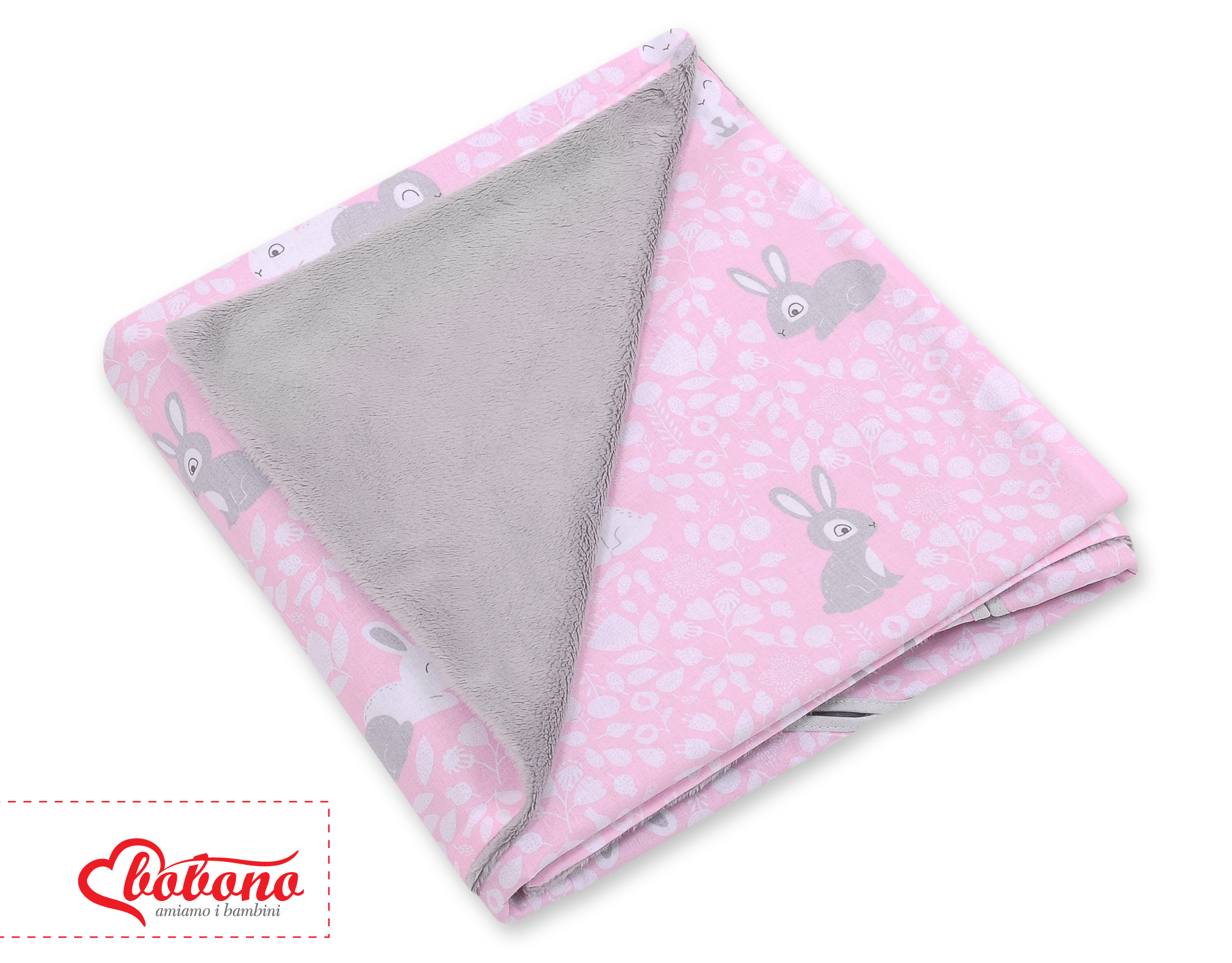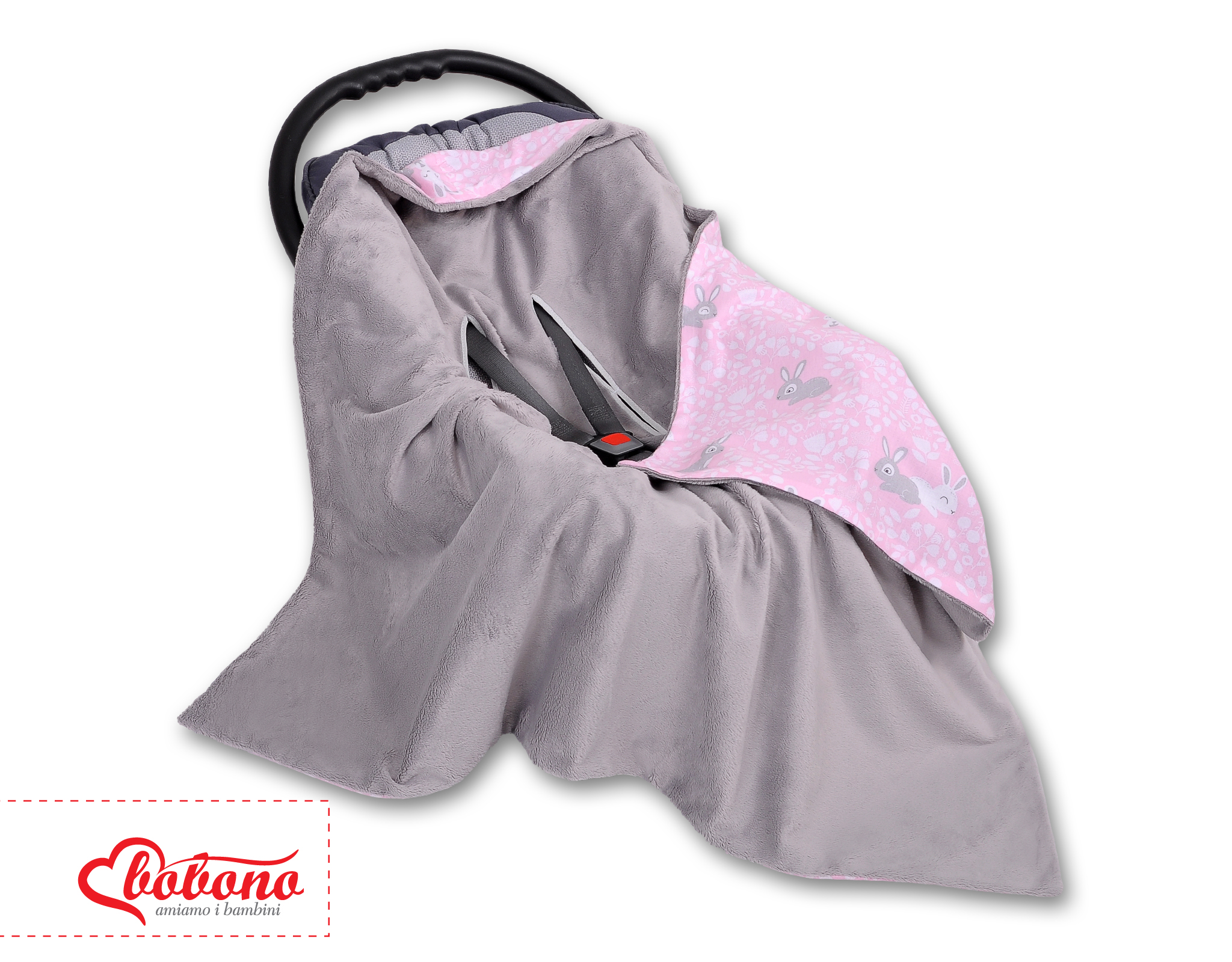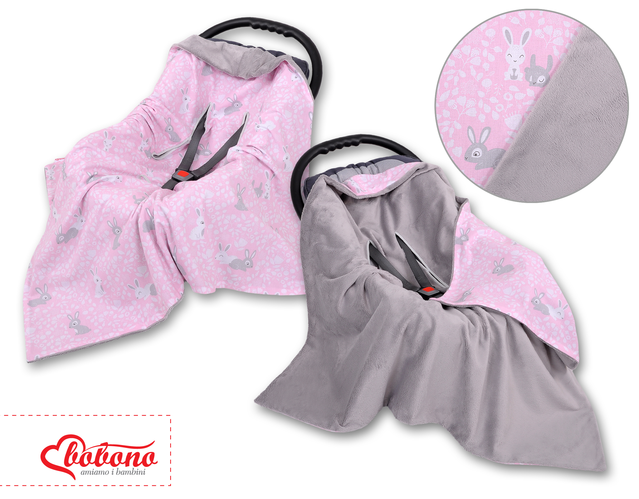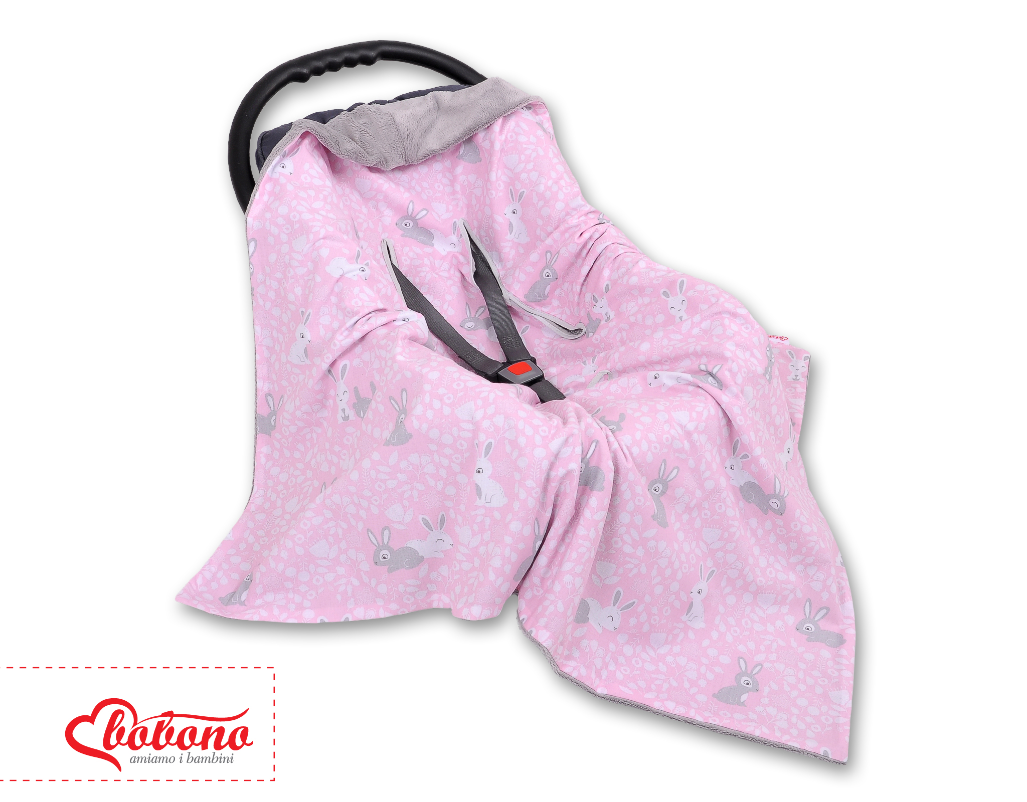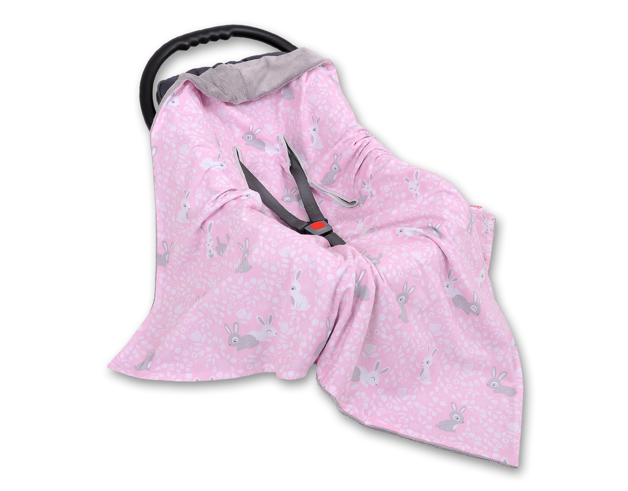 Stubenwagen » Bettwäsche für Babys » Bettwäsche für Babybett FUN & JOY » Wendedecke für Kindersitz » Wendedecke für Kindersitz - rosa Hasen