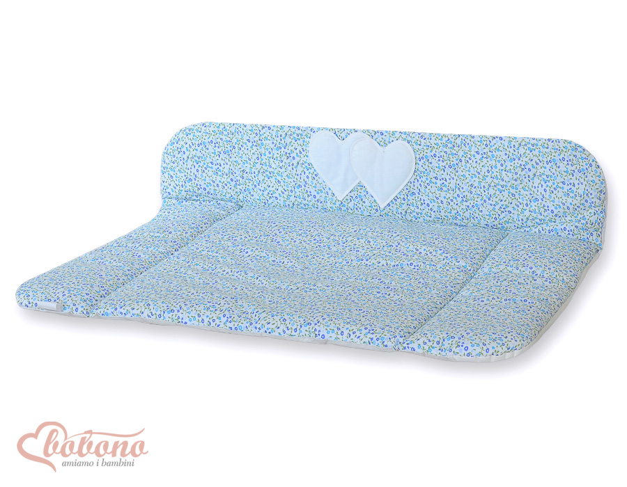 Stubenwagen » Bettwäsche für Babys » Bettwäsche für Babybett HERZEN » Wickelauflage auf Wickeltisch » Wickelauflage auf Wickeltisch - Hängende Herzen blaue Blümchen