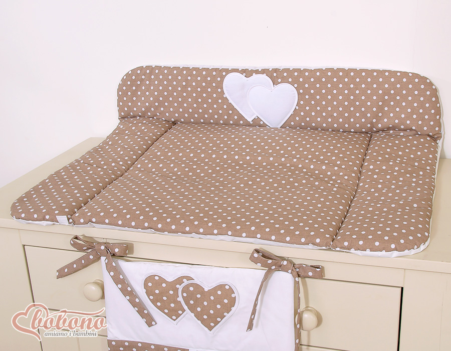 Stubenwagen » Bettwäsche für Babys » Bettwäsche für Babybett HERZEN » Wickelauflage auf Wickeltisch » Wickelauflage auf Wickeltisch - Hängende Herzen Braun-Punktemuster