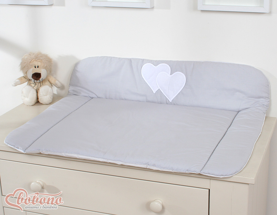Stubenwagen » Bettwäsche für Babys » Bettwäsche für Babybett HERZEN » Wickelauflage auf Wickeltisch » Wickelauflage auf Wickeltisch - Hängende Herzen grau