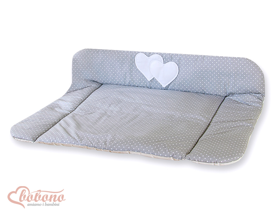 Stubenwagen » Bettwäsche für Babys » Bettwäsche für Babybett HERZEN » Wickelauflage auf Wickeltisch » Wickelauflage auf Wickeltisch - Hängende Herzen Grau-Punktemuster