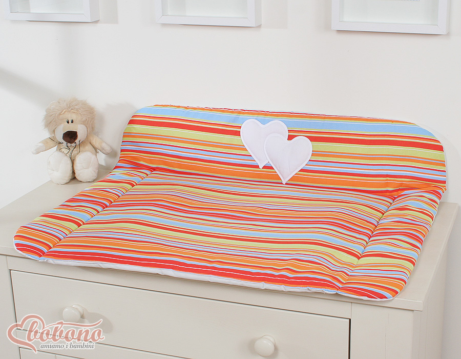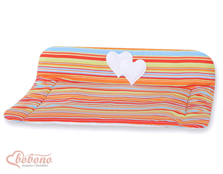 Stubenwagen » Bettwäsche für Babys » Bettwäsche für Babybett HERZEN » Wickelauflage auf Wickeltisch » Wickelauflage auf Wickeltisch - Hängende Herzen orange gestreift