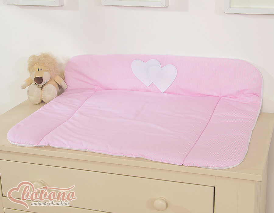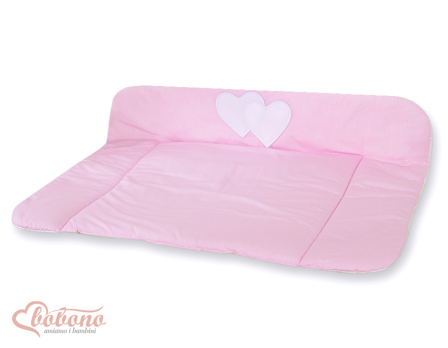 Stubenwagen » Bettwäsche für Babys » Bettwäsche für Babybett HERZEN » Wickelauflage auf Wickeltisch » Wickelauflage auf Wickeltisch - Hängende Herzen rosa gestreift