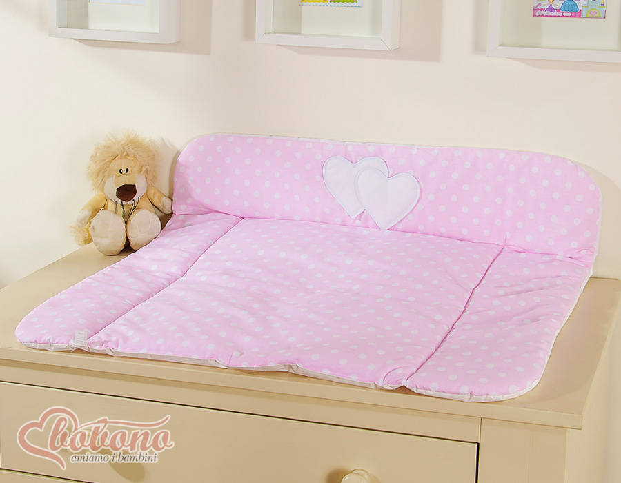 Wickelauflage auf Wickeltisch - Hängende Herzen Rosa - PunktemusterWickelauflage auf Wickeltisch - Hängende Herzen Rosa - Punktemuster
