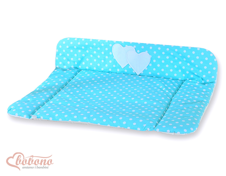 Stubenwagen » Bettwäsche für Babys » Bettwäsche für Babybett HERZEN » Wickelauflage auf Wickeltisch » Wickelauflage auf Wickeltisch - Hängende Herzen Türkis - Punktemuster