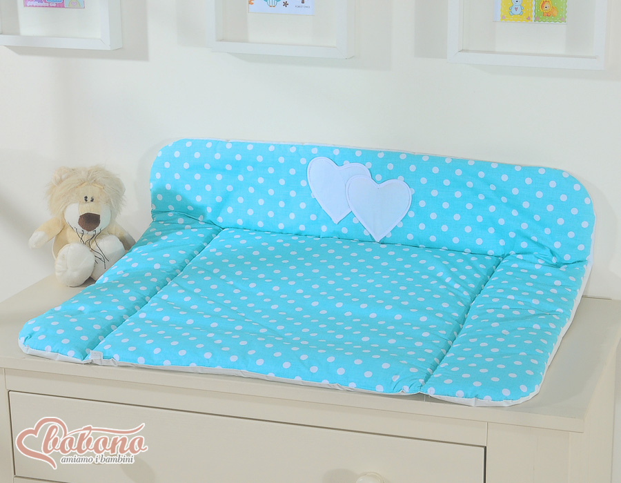 Wickelauflage auf Wickeltisch - Hängende Herzen Türkis - PunktemusterWickelauflage auf Wickeltisch - Hängende Herzen Türkis - Punktemuster