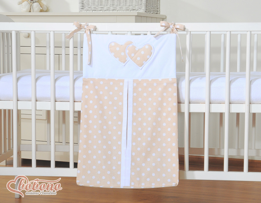 Stubenwagen » Bettwäsche für Babys » Bettwäsche für Babybett HERZEN » Windelntasche » Windelntasche - Hängende Herzen Beige - Punktemuster
