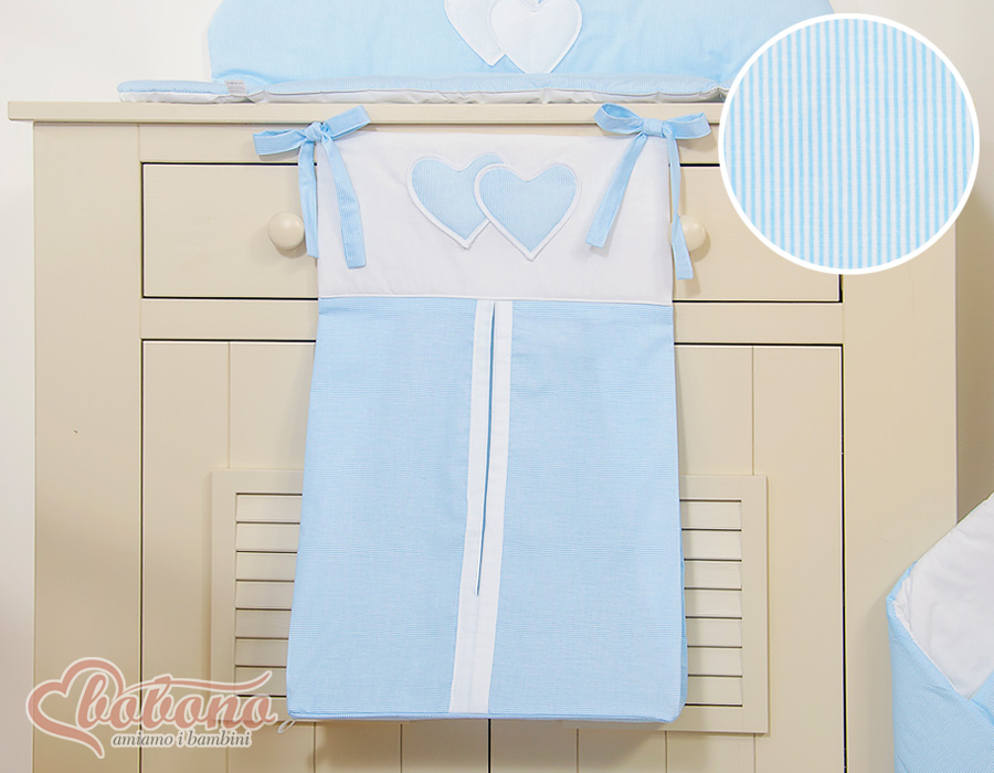 Stubenwagen » Bettwäsche für Babys » Bettwäsche für Babybett HERZEN » Windelntasche » Windelntasche - Hängende Herzen blau gestreift