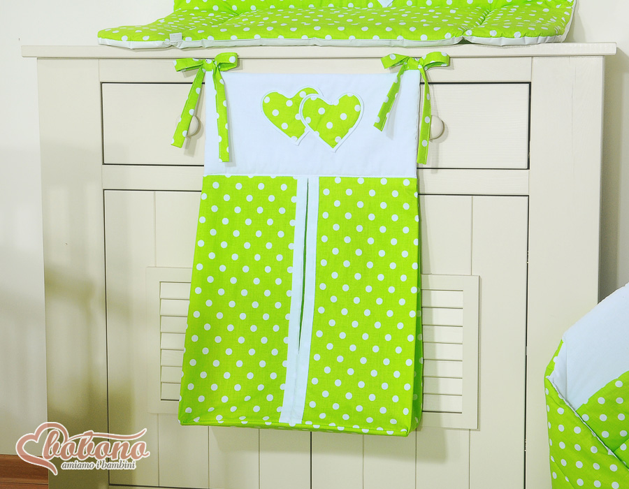 Stubenwagen » Bettwäsche für Babys » Bettwäsche für Babybett HERZEN » Windelntasche » Windelntasche - Hängende Herzen Grün - Punktemuster