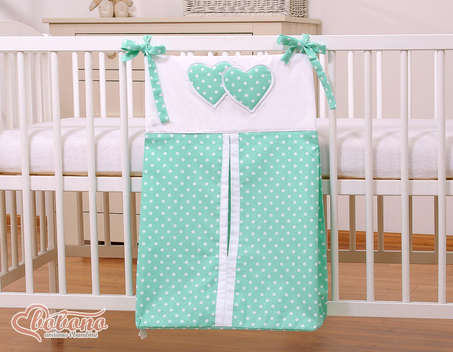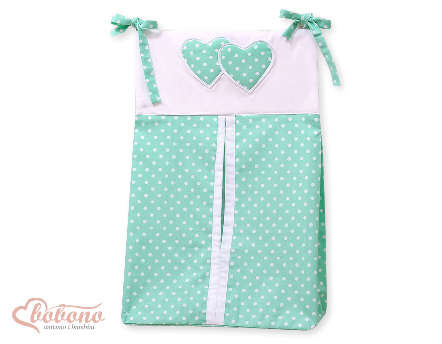 Stubenwagen » Bettwäsche für Babys » Bettwäsche für Babybett HERZEN » Windelntasche » Windelntasche - Hängende Herzen Minze - Punktemuster