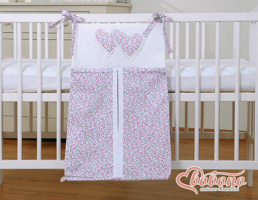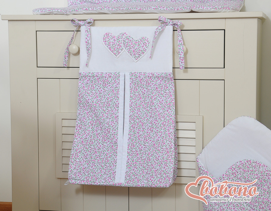 Stubenwagen » Bettwäsche für Babys » Bettwäsche für Babybett HERZEN » Windelntasche » Windelntasche - Hängende Herzen rosa Blümchen