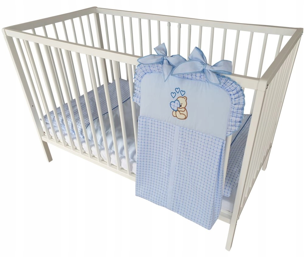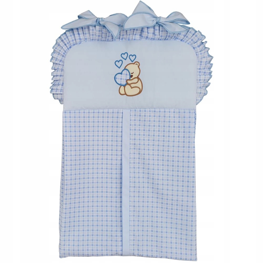 Die Tasche ist mit einem zarten Rüschensaum verziert. Sie sieht wunderschön aus und hilft, Ordnung zu halten. Die Tasche wird mit breiten Bändern am Bettchen befestigt, sodass sie zu allen Betten passt. Außerdem passt sie perfekt zu den Bettwäsche-Sets.